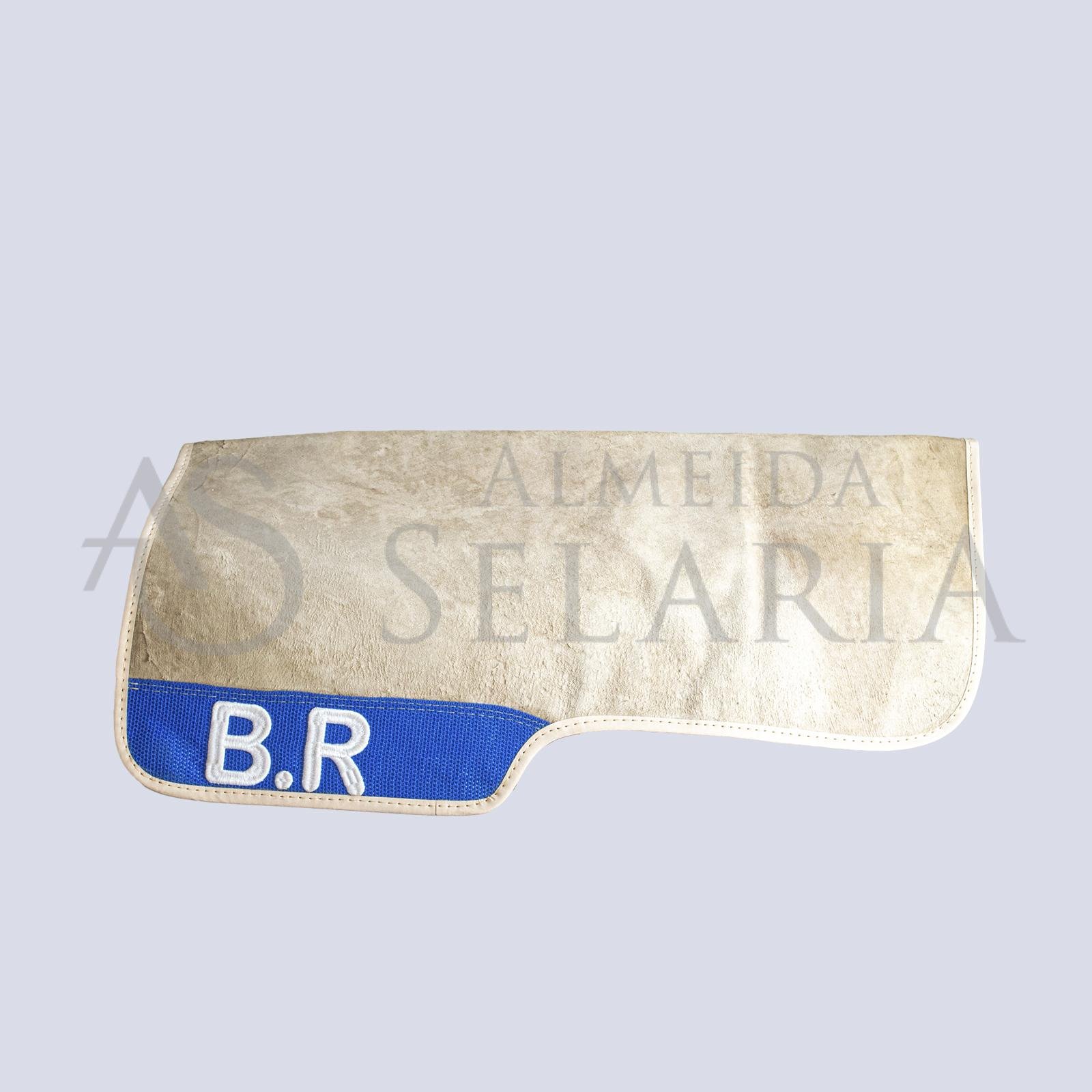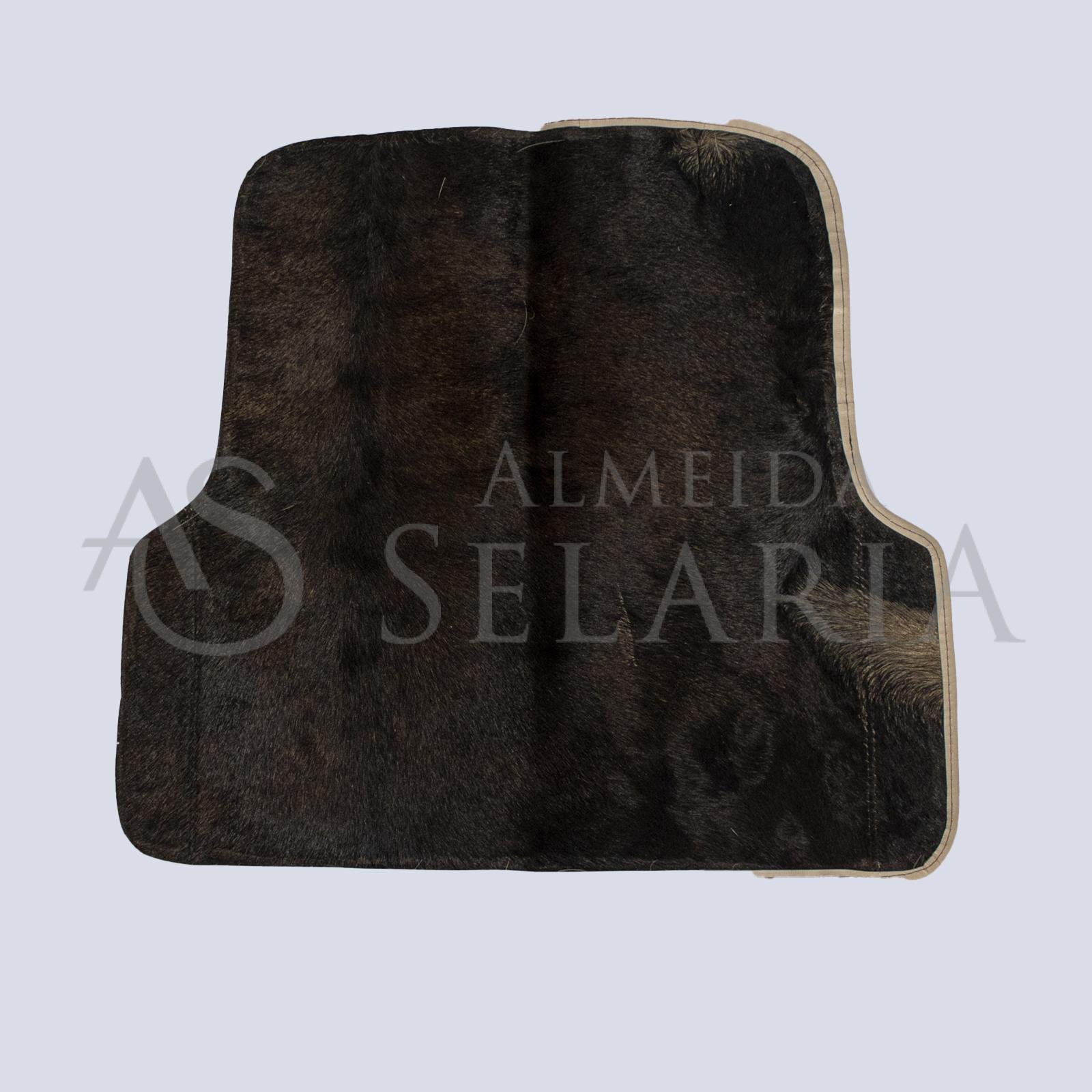 Manta simples, em couro de bode e revestida em pelego, ideal para quem busca funcionalidade e menor custo beneficio.